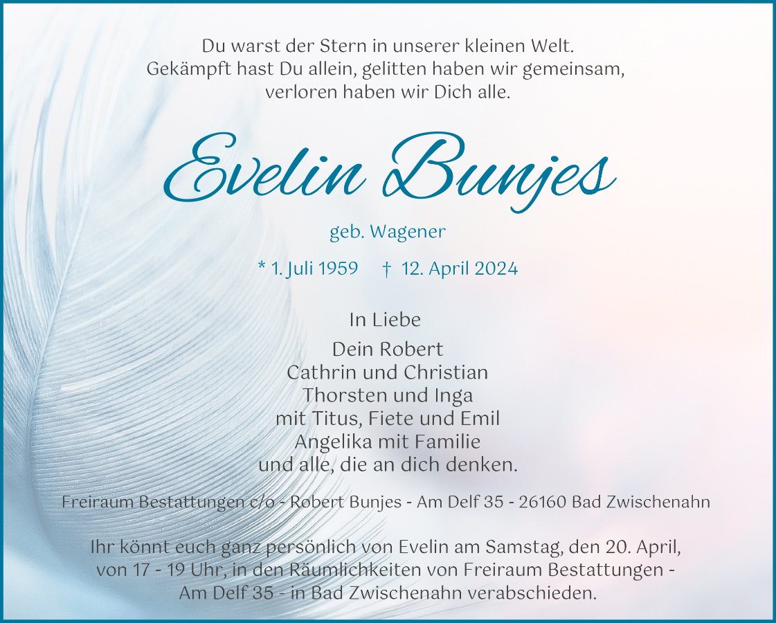 Gekämpft hast Du allein, gelitten haben wir gemeinsam, verloren haben wir Dich alle.
